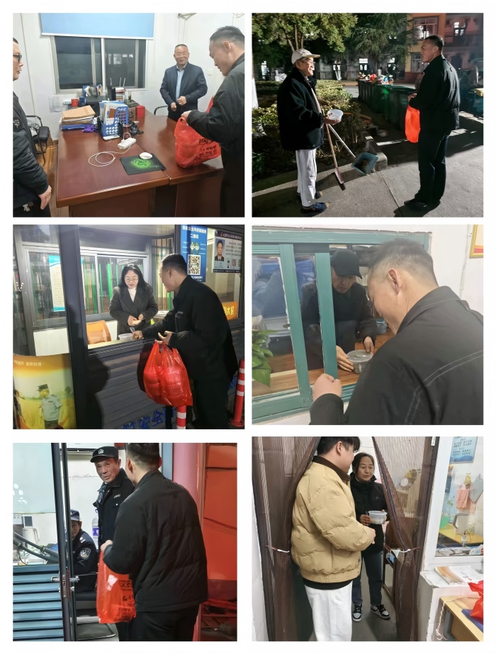 “暖心”更“走心”,服务显初心。汤圆煮熟后,学生志愿服务小队精心将热汤圆分装打包,带着满满的诚意与温暖,先后前往学校保卫处、宿舍值班室等岗位,将一碗碗热气腾腾的汤圆送到坚守一线的值班老师、门卫师傅和宿舍管理员手中,并向他们致以冬至的诚挚问候,感谢他们寒冬里为校园安全、师生生活保驾护航的辛勤付出。接过热汤圆的工作人员纷纷表示,这份温暖不仅驱散了冬日的寒冷,更让他们感受到了组织的关怀与温暖。