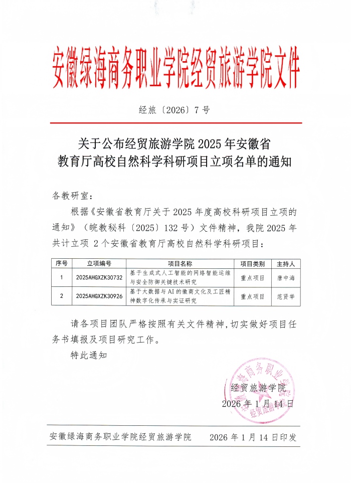 附件1:安徽绿海商务职业学院2025 年度高校科研项目立项名单