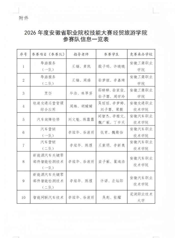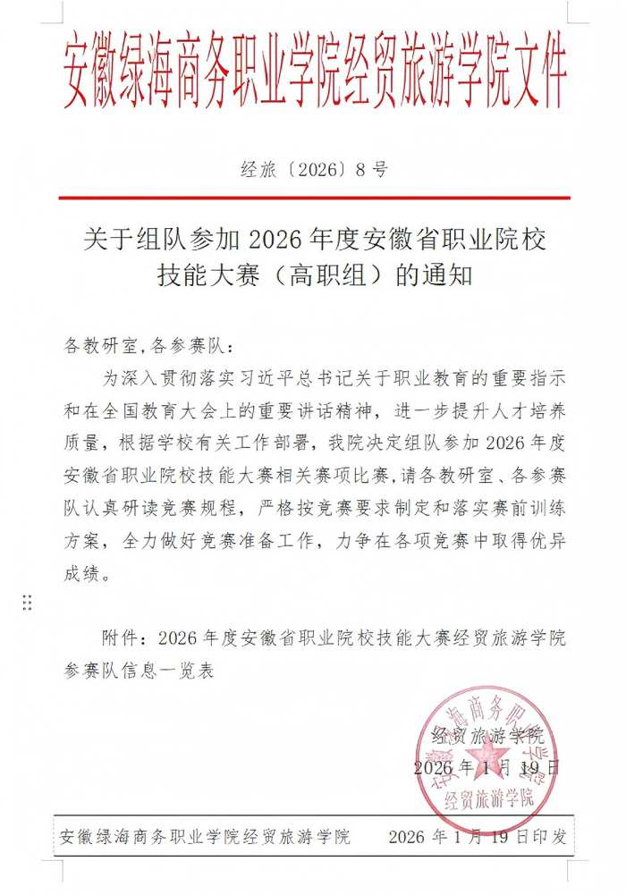 关于组队参加2026年度安徽省职业院校技能大赛(高职组)的通知