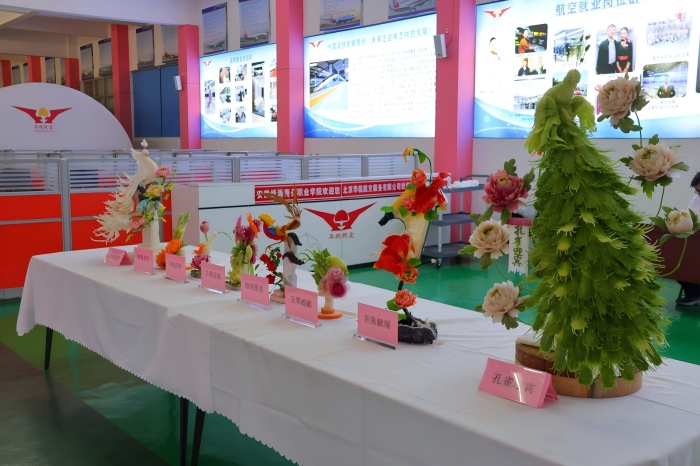 在学校中马文化交流周系列活动期间,1月15日,安徽绿海商务职业学院经贸旅游学院烹饪教研室师生,结合专业核心教学内容,集中展示了食品雕刻、创意面点类实践成果,以精巧烹艺为跨文化交流添彩,同时彰显了双高校建设背景下专业实践教学的扎实成效。