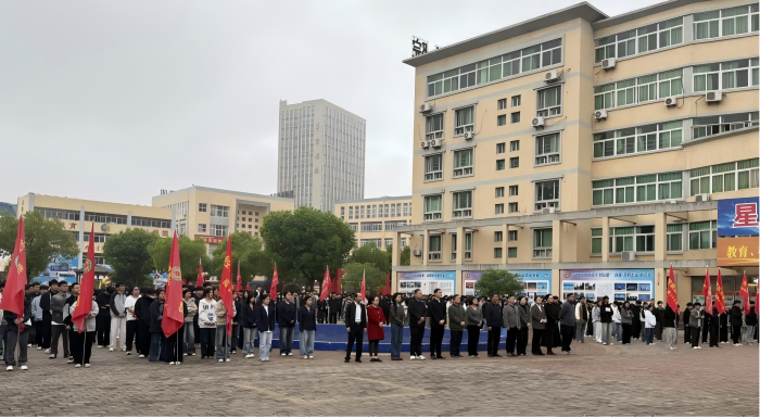 为深入贯彻立德树人根本任务,厚植师生爱国主义情怀,传承红色基因,弘扬延安精神,扎实推进校园思政教育与红色文化建设走深走实,4月13日清晨,安徽绿海商务职业学院经贸旅游学院在星青年文化广场隆重举行“以书香铸魂 传延安精神”主题升旗仪式。校团委书记、学生处副处长朱小明、经贸旅游学院院长汪芳琳教授、党支部副书记张蒙蒙及全院师生共同参加本次仪式。仪式由经贸旅游学院老师张维维主持。