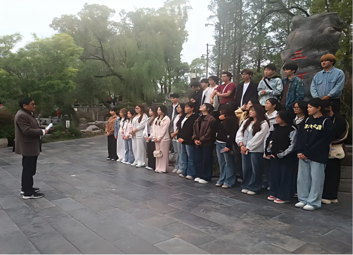 为深入贯彻产教融合、岗课赛证融通的现代职业教育理念,扎实推进实景化教学、沉浸式育人改革,4 月 17 日,在执行校长许信旺教授带领下,经贸旅游学院旅游管理专业教研室主任马超、专业教师方益群、辅导员周扬以及旅游管理 251 班全体同学共同走进国家 5A 级景区三河古镇,开展为期1天的野外实习实训活动。